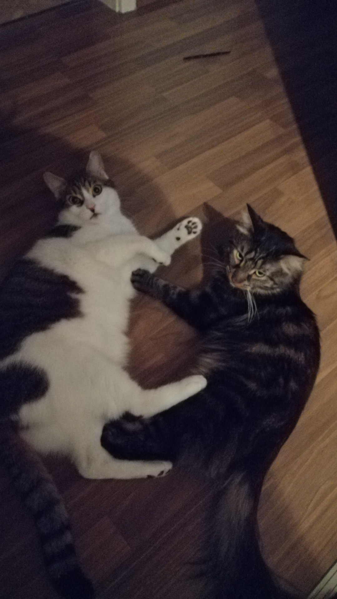 (Nein, die beiden haben nicht gekuschelt; die sind gerade fertig geworden sich zu prügeln! 😂)