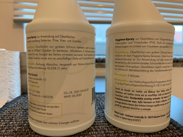Ich persönlich halte davon auch nicht viel.. habe auch mal gelesen, dass es da die selbe Zusammensetzung sein soll wie bei normalem Chlorreiniger 🙈 ich bleib da lieber bei Halamid und Disifin die auch Laborergebnisse vorzeigen können🙈Ok Foto ist schlecht. Hier etwas besser: Anhang anzeigen 214917