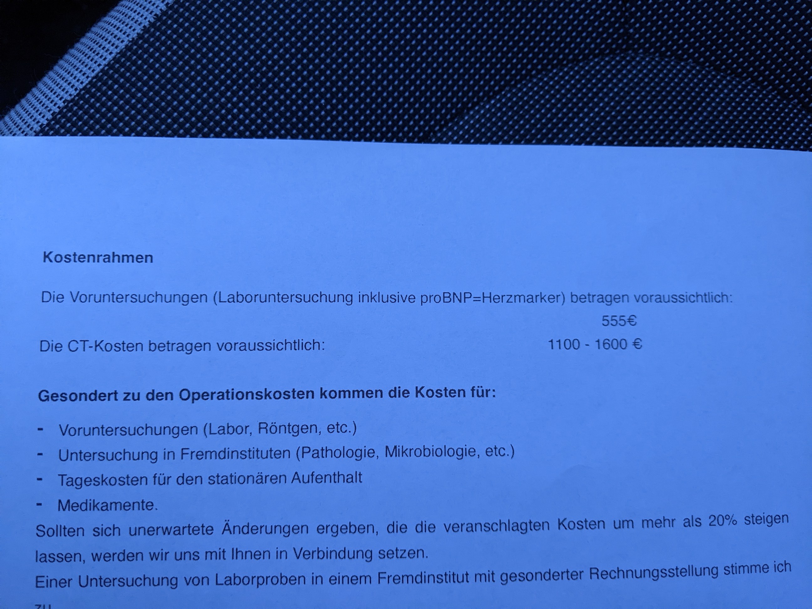 🤨…aber jetzt schau erstmal, wie sie dem Spatz helfen können. So ein KVA ist natürlich ein Hammer. Muss das durch den Verein getragen werden oder durch dich?Hab Brummi gerade für das MRT abgegeben. Durfte das hier unterschreiben 😳 Schätzung OP: noch mal 2.000. Holy moly.