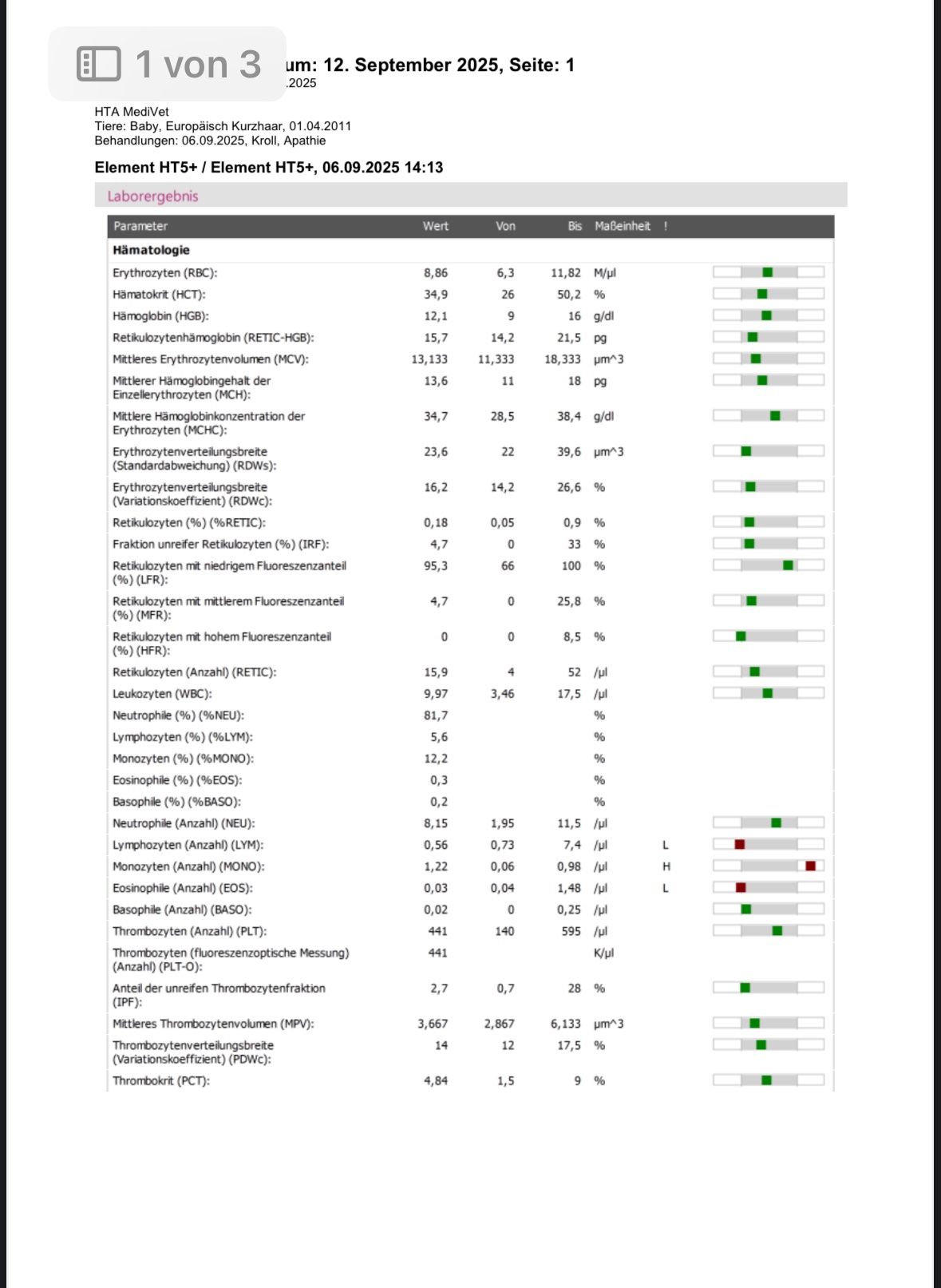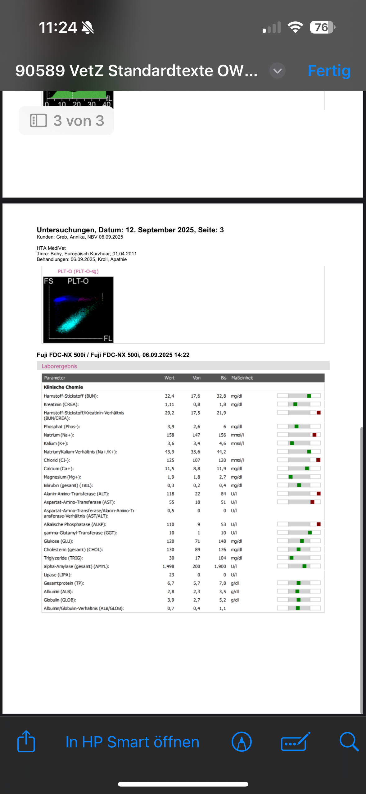 Dienstag muss ich eh wieder zum Tierarzt, weil die Werte dann nochmal überprüft werden sollen .