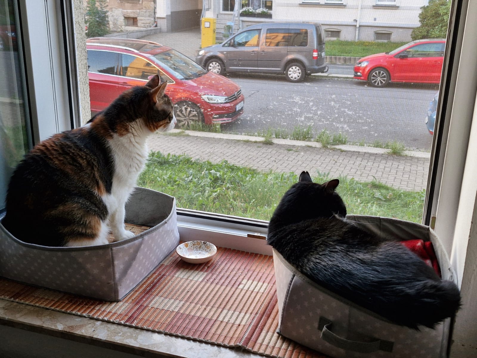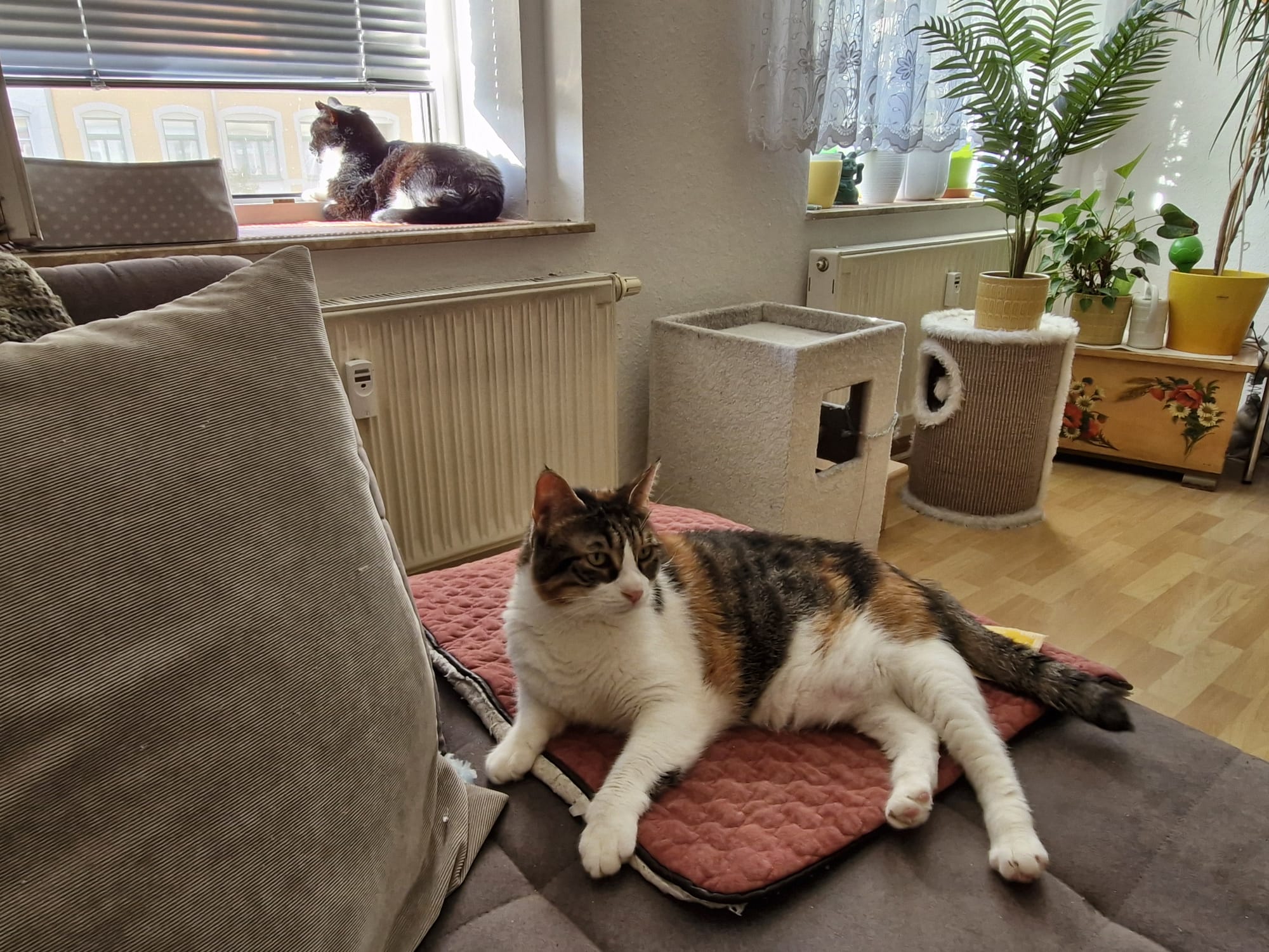 hier seht ihr sie heute mit ihrem neuen Kumpel Prince auf der Fensterbank beim chillen