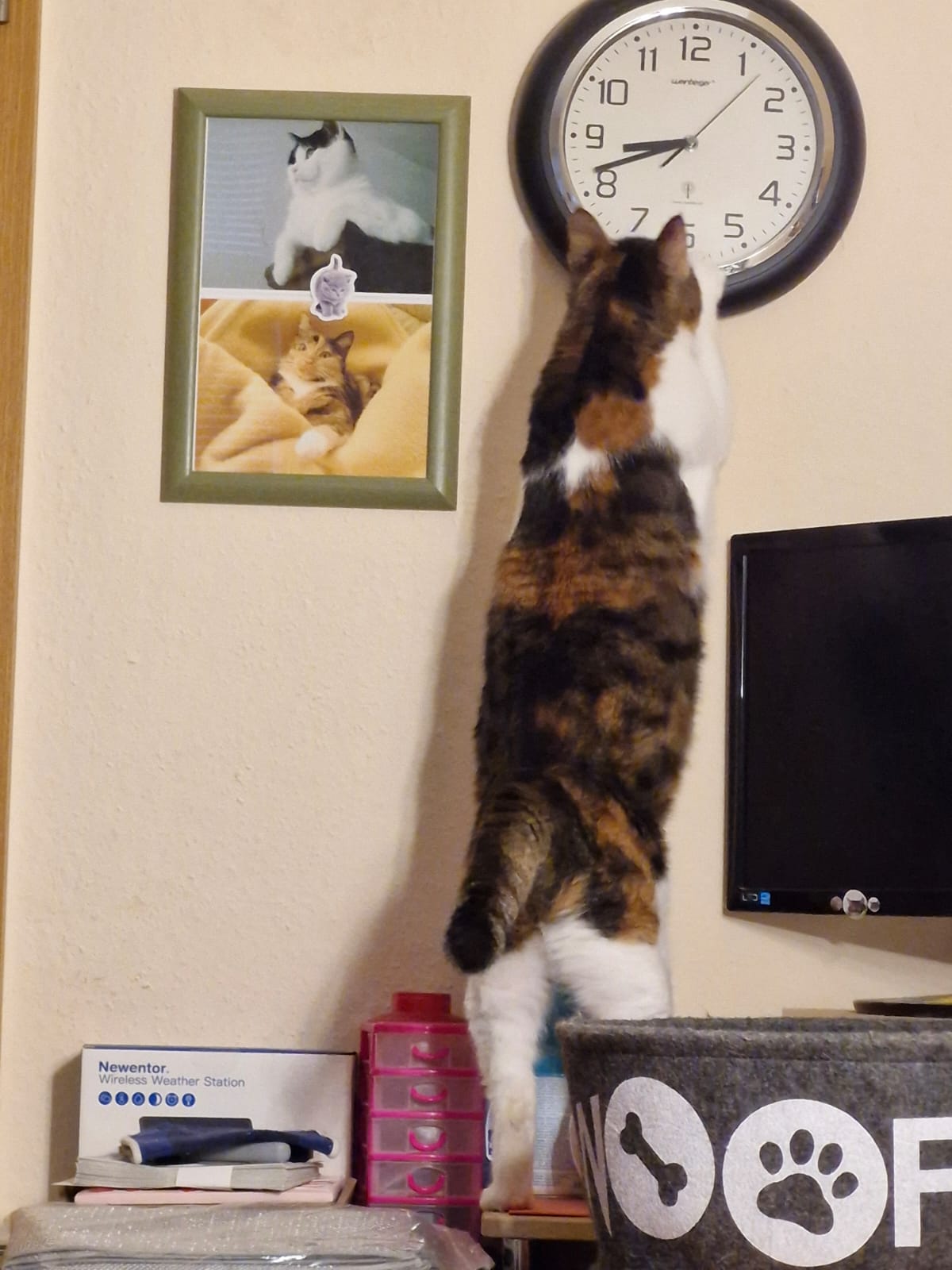 Serena beim Überprüfen der Wanduhr - der Sekundenzeiger ist einfach faszinierend