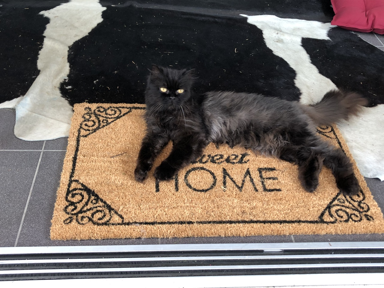 Das halte ich vor mich wie ein Stierkämpfer in der Arena und scheuche die Katze gen Box. Weil sie nicht aus kann, Handtuch/Decke ihr aber ein bisschen angst machen, greift der Fluchtreflex und Katze sucht nach einen Spott, wo sie sich verkriechen kann..also in diese komische Höhle die da steht, die Transportbox. Katze huscht rein, dann muss man schnell sein und die Tür zumachen und schon ist Katz' transport-bereit.