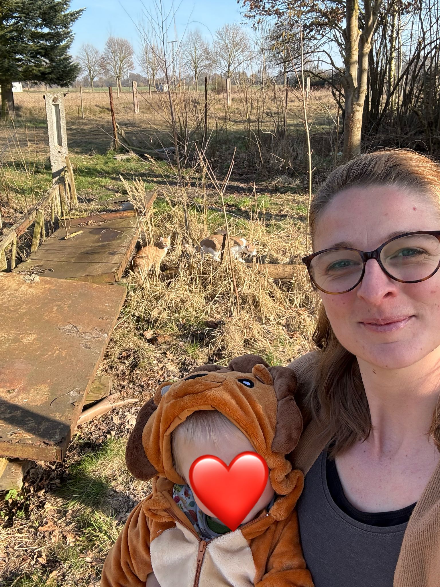 Könnt ihr die zwei hinter uns erkennen? Sie gehen immer mit und erkunden so mehr und mehr den alten Hof und seine Ecken hinter der Scheune.