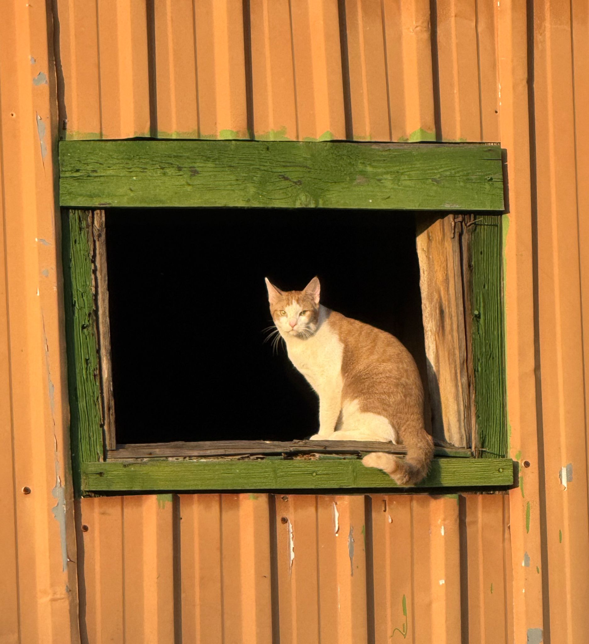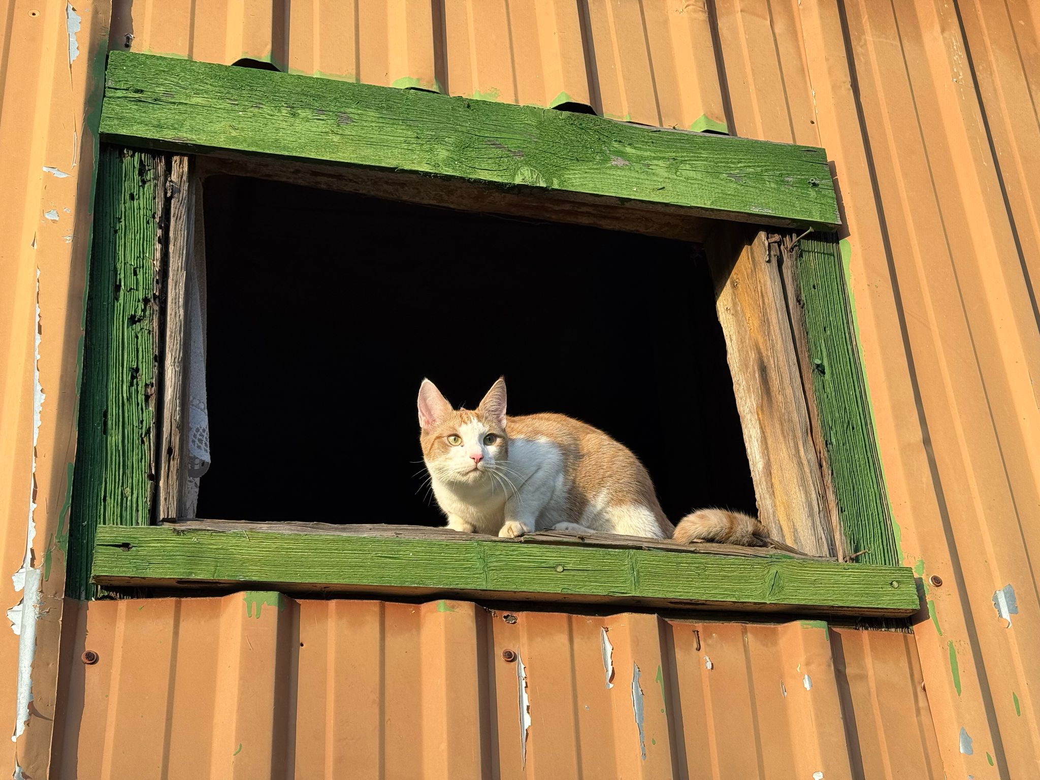 Vom oberen Bereich der Scheune beobachtet Kalle immer ob alles seine Ordnung hat...